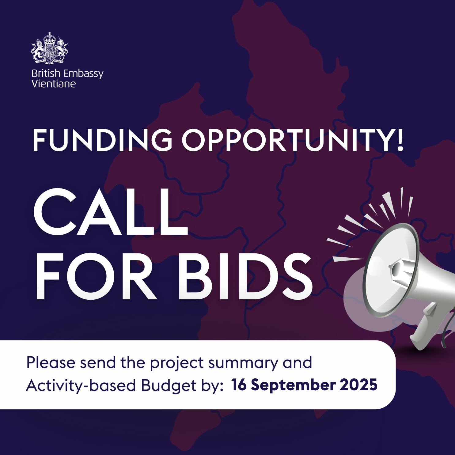 The British Embassy Vientiane invites project proposals for funding between Β£20,000βΒ£30,000, with all activities and spending to be completed by 28 February 2026.