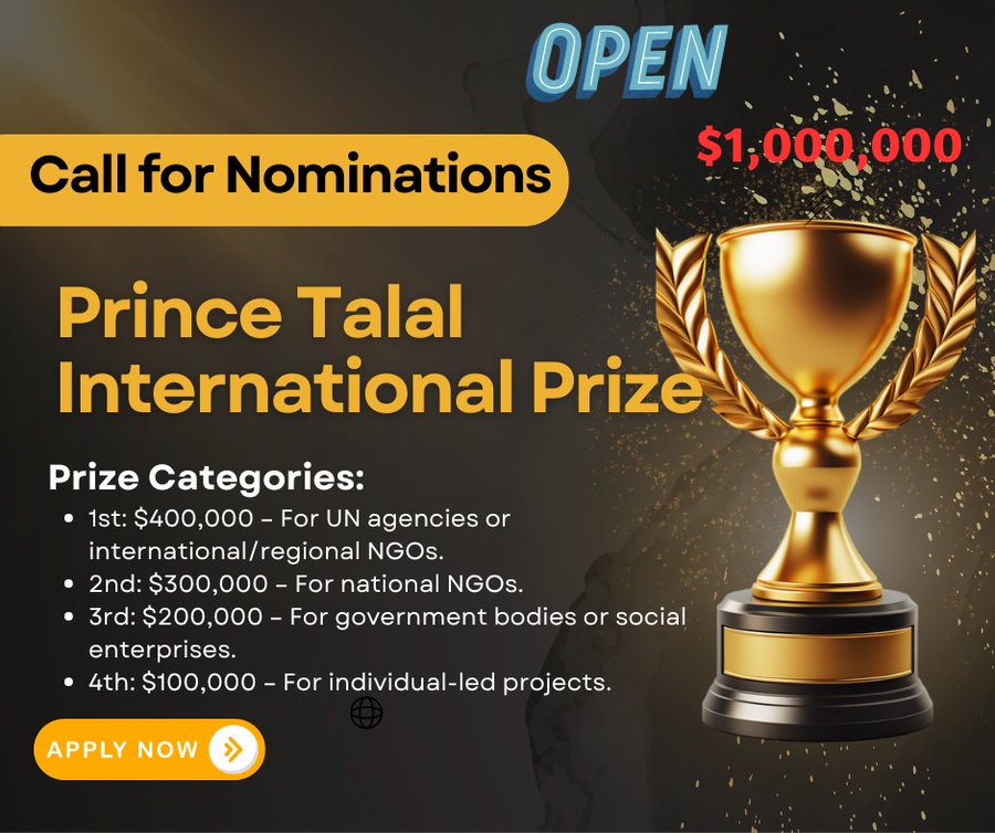 Nomination for Prince Talal Prize shall be made by filling out the e-nomination form on the AGFUND website.